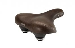 Komfortabel cykelsadel med vacuumtec og elastomer i flot brun design og blank understel.